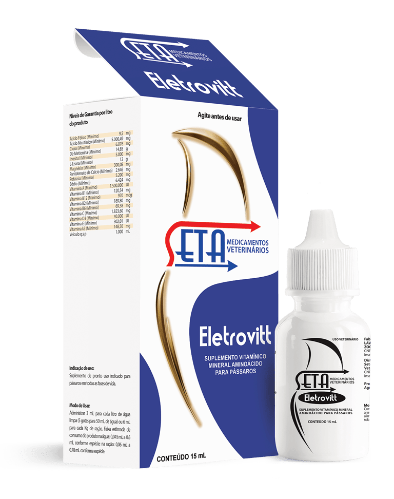 Contém 33 nutrientes. Entre eles o extrato de guaraná, conhecido por suas propriedades energéticas. Além do complexo vitamínico ADE e a Sacarose essencial aos pássaros como fonte de energia e vitalidade. Contém Eletrólitos e Vitaminas além de Metionima e Lisina. Indicado para pássaros em todas as fases de vida . Especialmente formulado para corrigir Eletrólitos perdidos durante o processo de desidratação. Auxilia na diminuição da mortalidade e desuniformidade de lote, na produtividade e conversão alimentar . Reforço energético essencial e de fácil assimilação . Aumenta a resistência orgânica para viagens longas, vacinação e mudanças bruscas de temperatura.