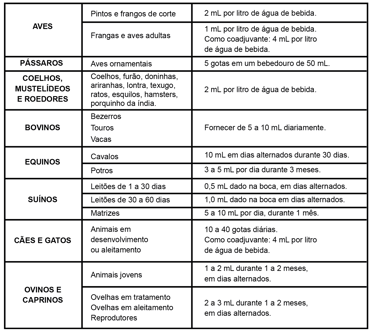 Essas dosagens podem ser alteradas de acordo com as recomendações do médico veterinário.